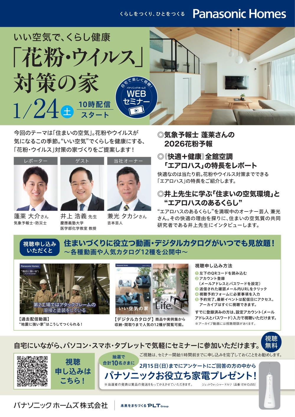 「花粉・ウィルス」対策の家▶▶▶1/24(土)10時配信開始!