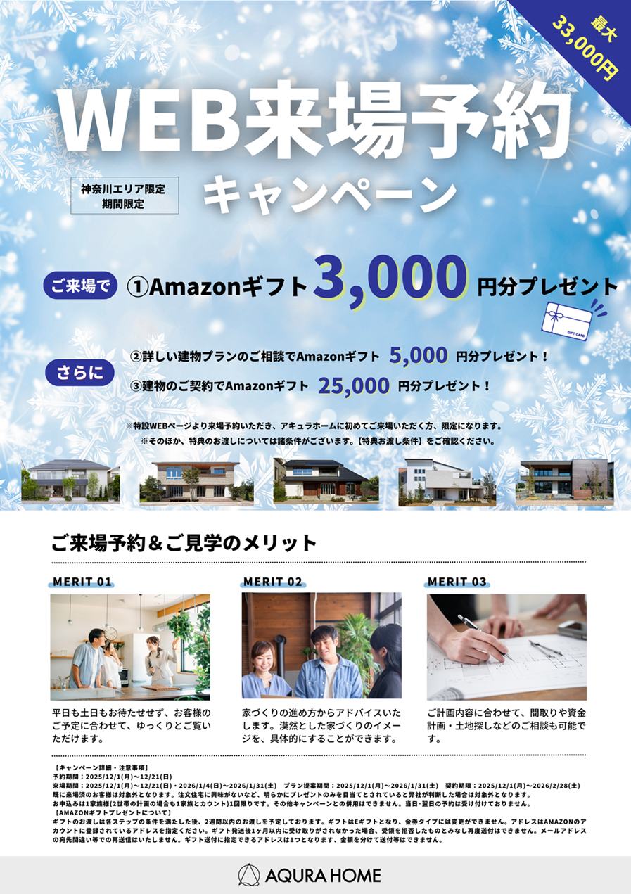 下記URLからのWEB来場予約でアマゾンギフト3,000円分(eギフトカード)をプレゼントしております。