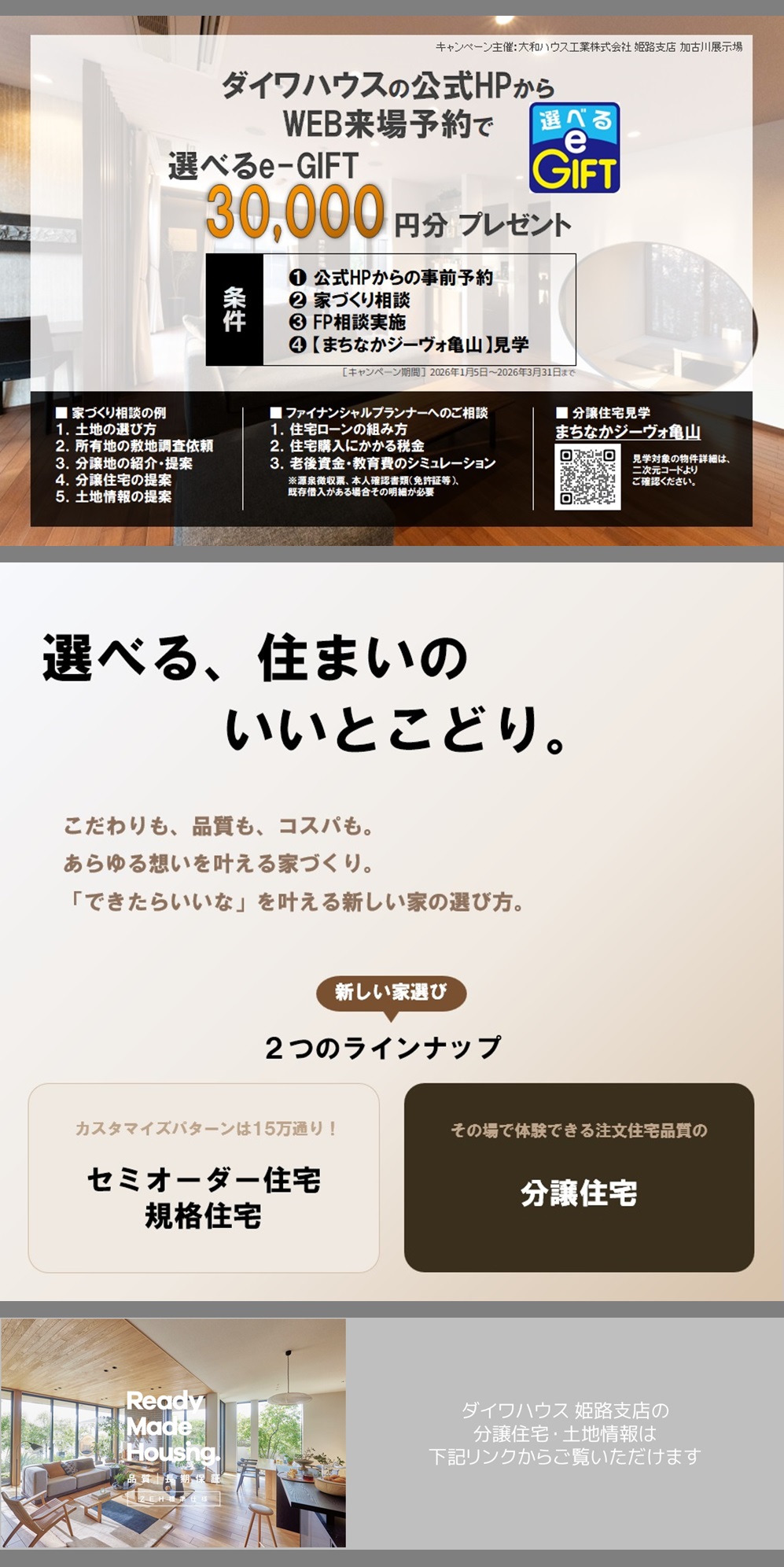 ※この特典は「大和ハウス工業(株)姫路住宅営業所」による提供です。この内容についてのお問い合わせは「大和ハウス工業 姫路住宅営業所079-285-2152」までお願いいたします。