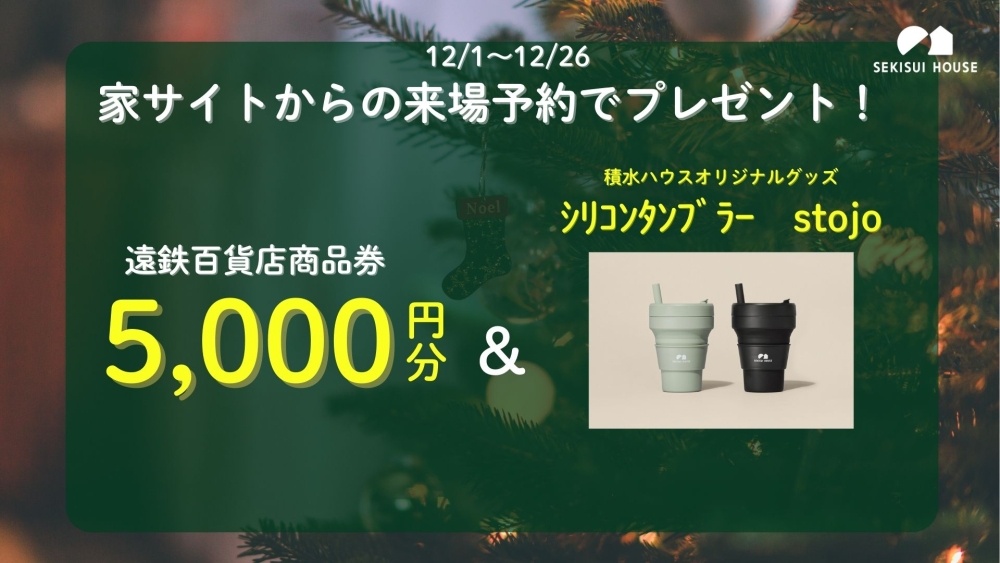 「遠鉄百貨店商品券5000円分+積水ハウスオリジナルグッズ シリコンタンブラーstojo」