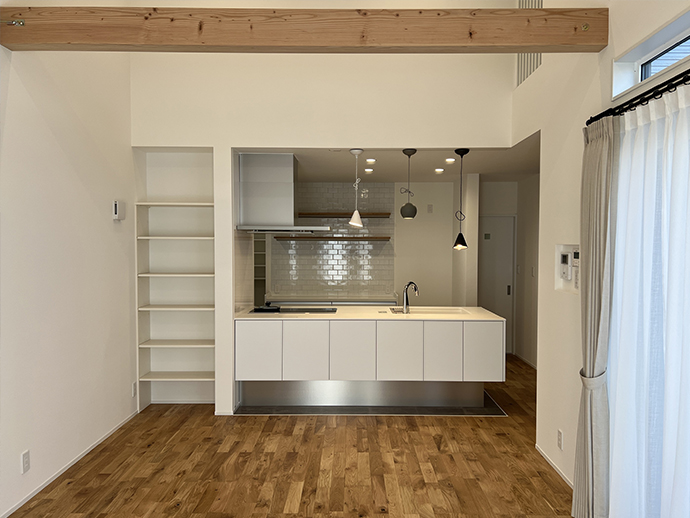 無垢材の温かみがあるため冷たい印象はなく、家族の繋がりを感じやすいワンフロアでゆったりとお暮し頂けます。