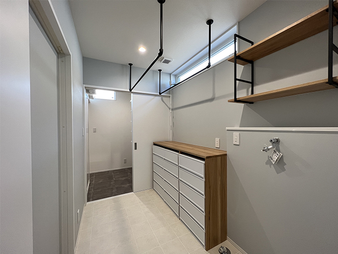 また、玄関を中心に居室とLDKを分けているため、平屋の懸念点でもあるプライバシーの確保もしっかりとされた設計となっております。