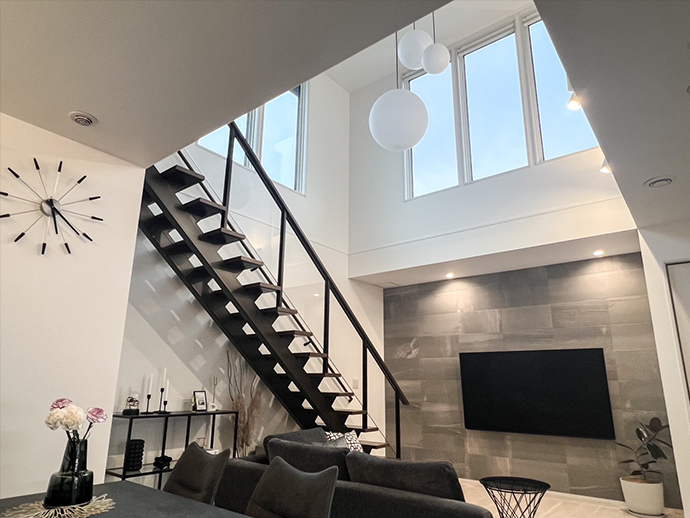 他にも間接照明やペンダントライト、吹き抜けのモディファイなど照明計画にもこだわりがたくさんございます。